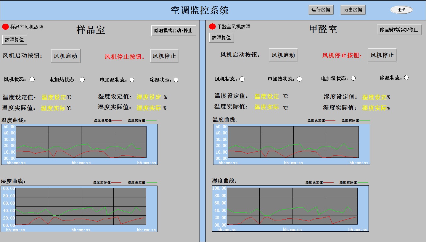 恒温恒湿空调主要分为精密空调和水系统空调,精密空调控制系统由厂家配置,水系统空调控制由我公司技术人员单独定制开发。